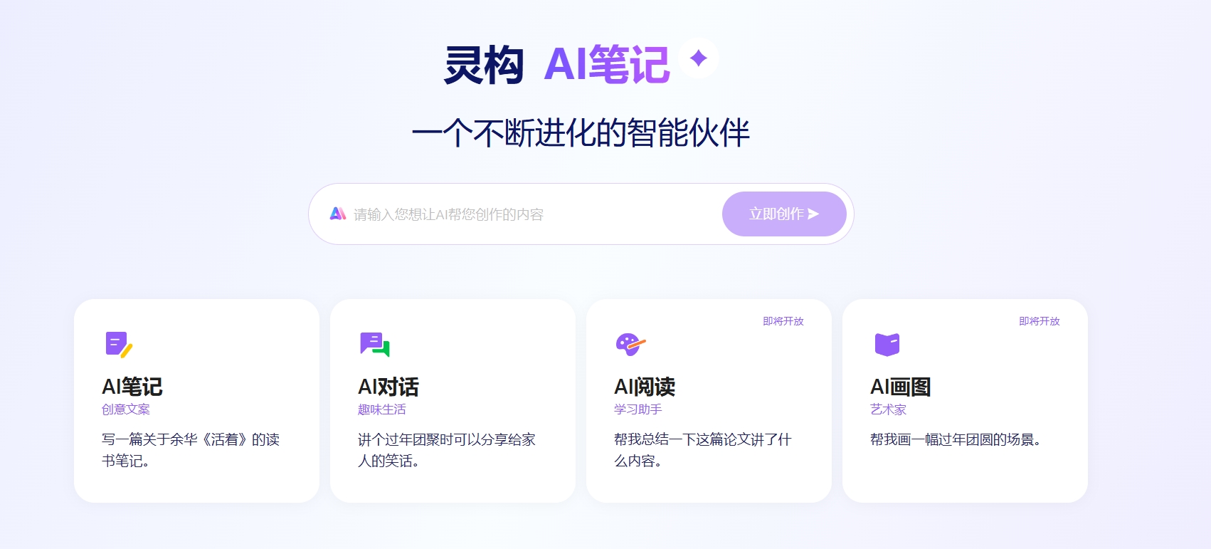 AI助手快速创作/续写/扩写。灵构笔记内置了强大的AI助手,可以帮助用户在营销文案、工作总结、心得体会、培训总结上进行丰富的创作。