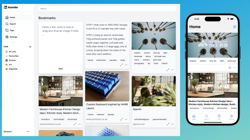书签链接管理:用户可以轻松添加和管理网页链接,Hoarder支持一键保存,让信息收集变得简单快捷。