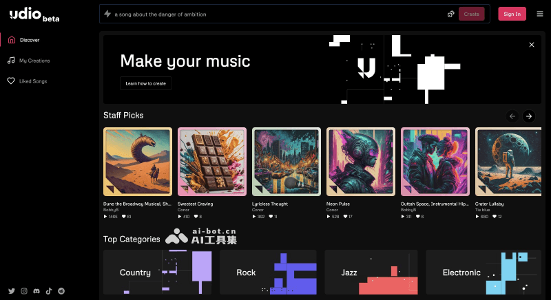 Udio是一款由前Google DeepMind研究人员创立的人工智能音乐生成器,旨在让任何人都能够轻松地创作出具有情感共鸣的音乐。该AI音乐生成工具能够根据用户输入的文本提示,包括音乐风格、主题、歌词等信息,快速生成包含人声的完整音轨。Udio不仅支持多种音乐风格和流派,还能够捕捉并表达音乐中的情感,创造出既逼真又具有创意的音乐作品。